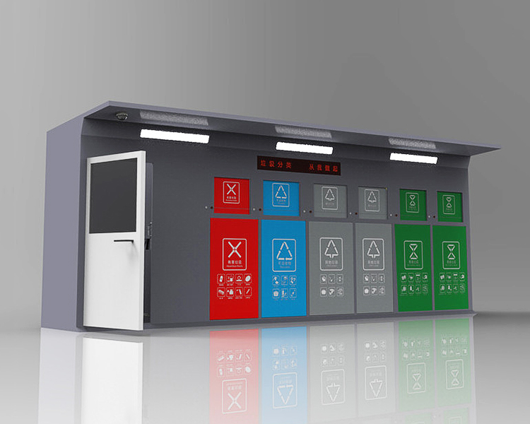 垃圾房配置:安卓触摸屏、满载警示预警、监控摄像头、扫码投递装置