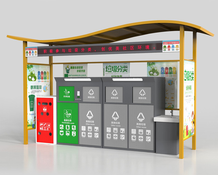 垃圾分类亭使用场景:可安置于社区,办公区域,商业中心户外公共区域